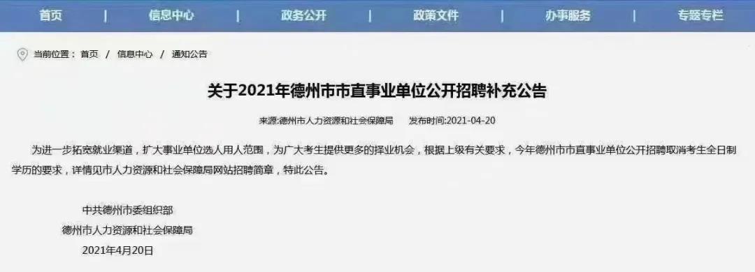 2021年市直單位的公告:取消考生全日制學(xué)歷的要求;