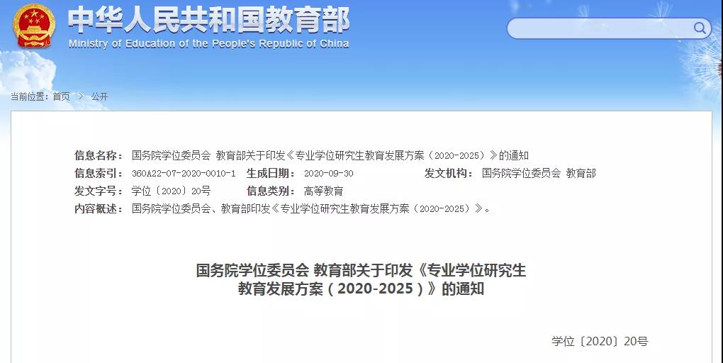 爭(zhēng)取到2025年,以國家重大戰(zhàn)略、關(guān)鍵領(lǐng)域和社會(huì)重大需求為重點(diǎn),增設(shè)一批碩士、博士專業(yè)學(xué)位類別,將碩士專業(yè)學(xué)位研究生招生規(guī)模擴(kuò)大到碩士研究生招生總規(guī)模的三分之二左右。”