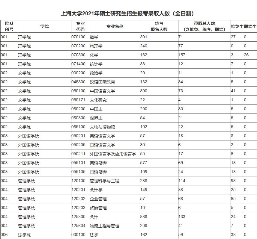 上海大學2021年各專業報錄比詳情