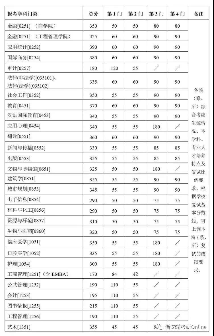 招生專業及復試線: