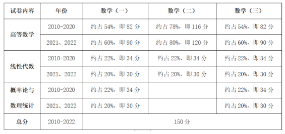 通過上述表格,不難發現,相比此前的2010年到2020年的考研數學,2021、2022考研數學明顯加大了選擇題和填空題的出題力度以及題目分值;而根據歷年報考情況來看,報考數學(二)學科的考生人數逐年上升,較報考數學(一)或數學(三)的考試來說,競爭明顯更激烈。