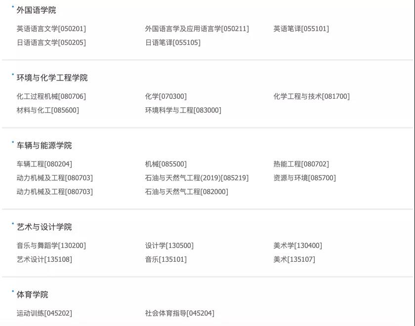 學校設有11個博士后流動站,14個博士學位一級學科,1個專業博士學位類別(工程博士),33個碩士學位一級學科,11個專業碩士學位類別,17個工程碩士授權領域,64個本科專業,已形成以工學為主,文學、理學、經濟學、管理學、法學、藝術學、哲學、教育學等9個學科門類共同發展的學科格局。