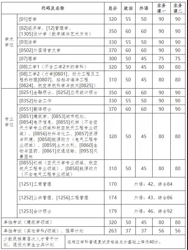 招生專業及復試線: