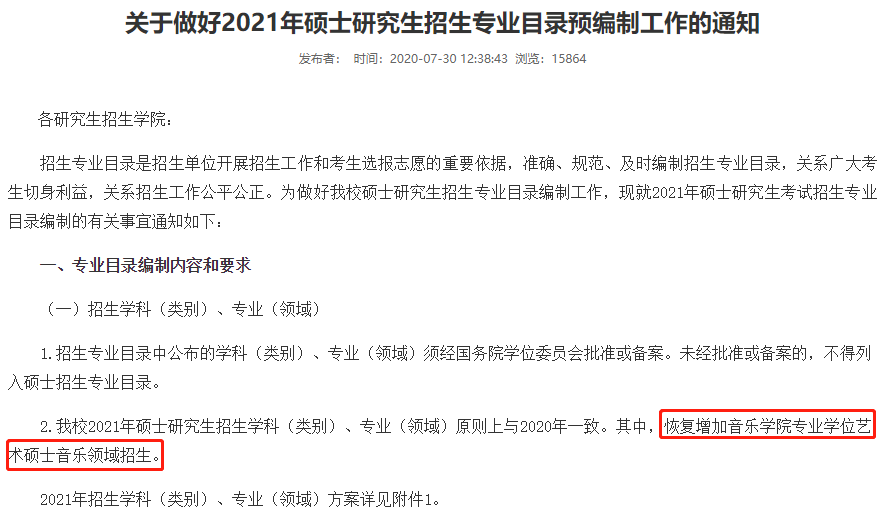 《通知》指出:恢復(fù)增加音樂學(xué)院專業(yè)學(xué)位藝術(shù)碩士音樂領(lǐng)域招生。