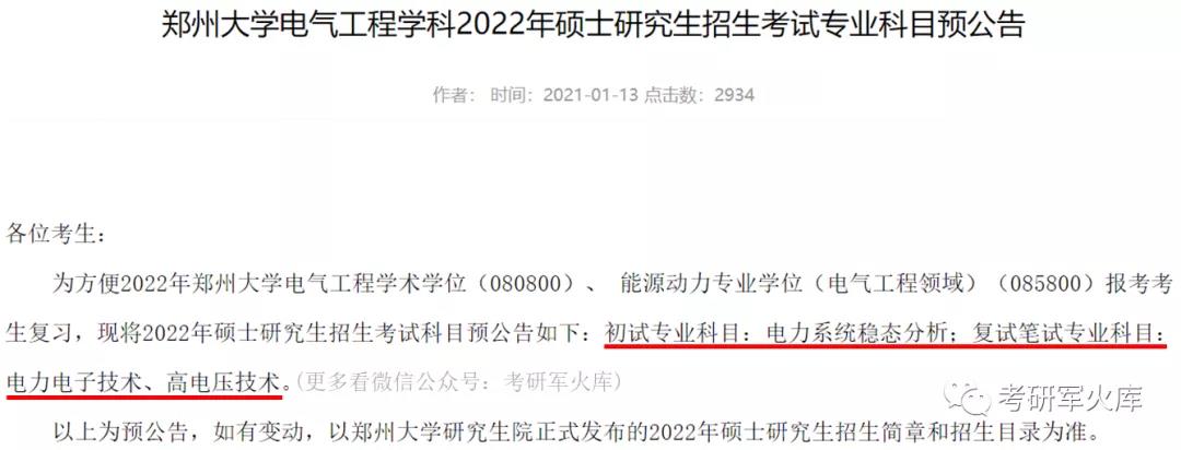 電氣工程學術學位、 能源動力專業學位(電氣工程領域)的初試科目由2021年的952電路調整為:電力系統穩態分析,復試筆試專業科目由2021年的電子技術基礎和電力系統分析調整為:電力電子技術和高電壓技術。