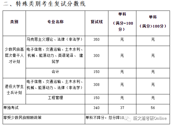 招生專業及復試分數線