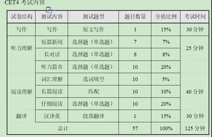 先來回顧下四六級考試的試卷結構,其中閱讀35%,聽力25%,寫作和翻譯各占15%,聽力一直是許多同學的痛點難點,大學以來幾乎沒有再接觸最為生疏。