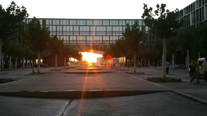 圖書館處于天大新校區的中心位置,主體平面呈規整長方形,內側為中心庭院。建筑主體重心與校園東西軸線相重合,周邊有公共教學區環繞,是各個景觀軸線交匯處。圖書館總體借鑒中國傳統建筑的“庭院”為中心的空間模式,營造一個具有現代校園精神的公共性、開放性的文化場所。