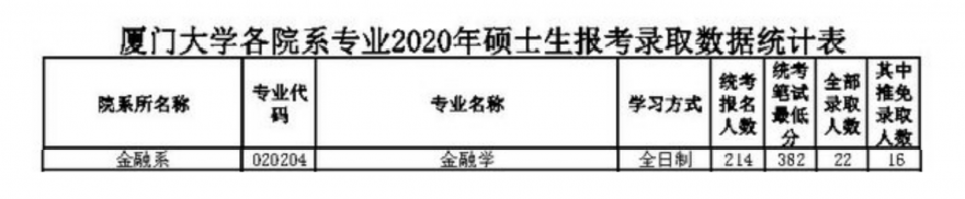 廈門大學2020年金融學專業報考214人,統考錄取6人,報錄比高達36:1,且該專業報錄比常年在40:1左右: