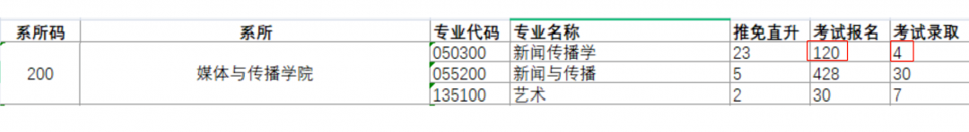 上海交通大學2019年新聞傳播學報考172人,統考錄取3人,報錄比高達57:1;2020年報考120人,統考錄取4人,報錄比30:1。