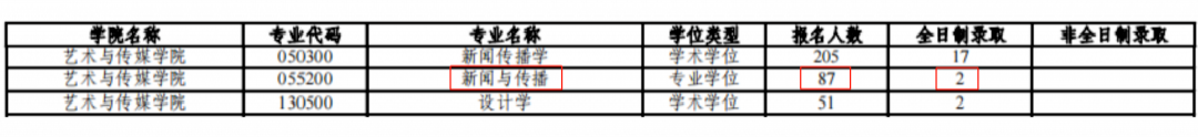 同濟大學20年新聞與傳播專業報考87人,統考錄取2人,報錄比44:1。
