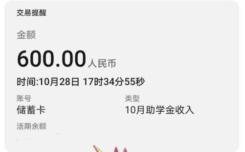 還有就是國家助學金,一般學校發放的標準是每人每年6000元,然后按月發放,每月會打到學生的卡中。