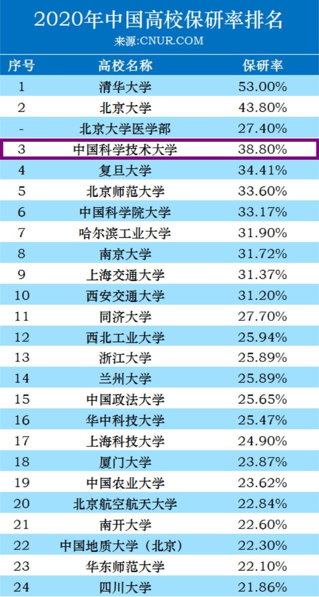 當然,有些學校值得關注,在經常被網友稱為“中國第三”的浙江大學,保研率只有25.89,在華東五校中不僅是墊子,也是C9高中中最低的分數。