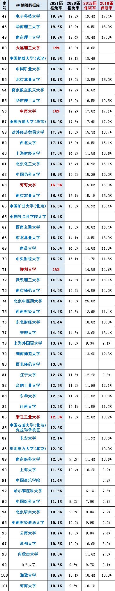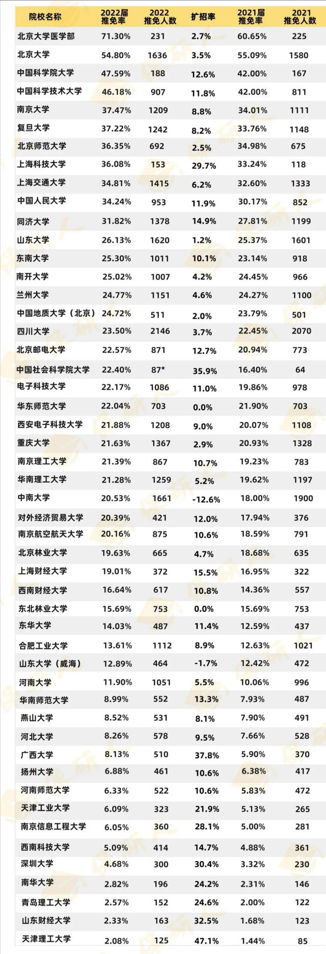 近五年的保研率排名,擁有保研資格的學校又哪些