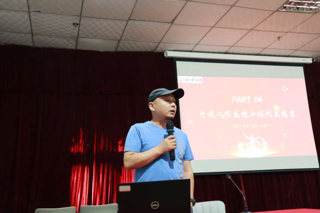 湖北新文道副總經理張建強老師在動員大會上宣讀了2022年暑期開課執行方案,再次明確各工作小組的職責,要求全體員工嚴格執行工作程序,認真履行崗位職責,加強組織紀律性,大力弘揚“團結互助、開拓進取、愛崗敬業、與時俱進”的精神,盡全力保障暑期開課工作的順利進行。