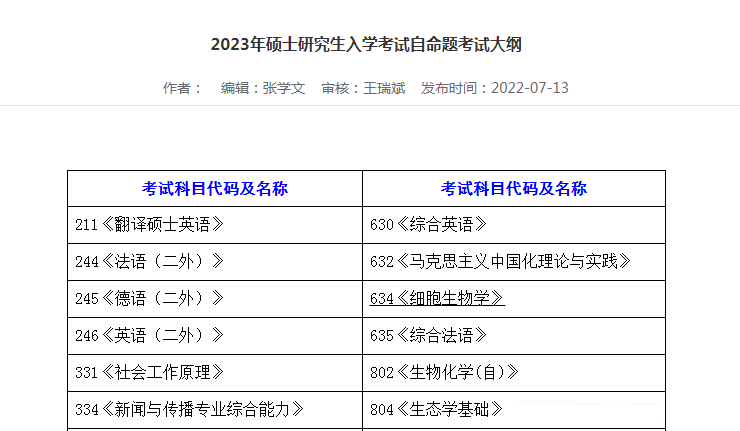 西北師范大學(xué)發(fā)布了2023年碩士研究生招生考試自命題科目參考大綱。