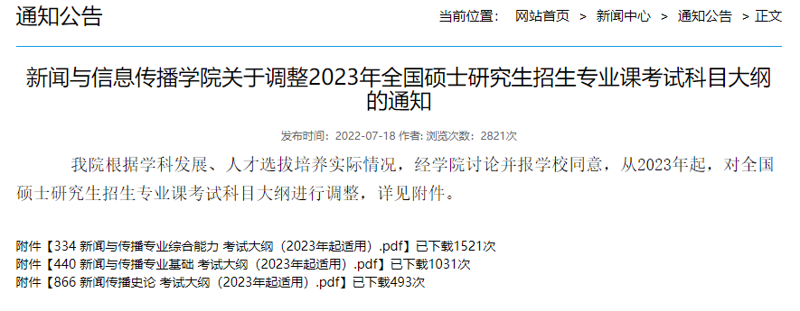其新聞與傳播學(xué)院發(fā)布了23考試大綱!其中334初試科目必考范圍由新聞采訪、新聞報(bào)道寫作改成新聞采訪與寫作;選考范圍中的電視實(shí)務(wù)改為視聽傳播。題型由分析論述題、操作題改為論述題、綜合應(yīng)用題。更多修改大家可以查看官網(wǎng)上的大綱變動(dòng)~