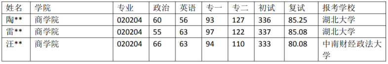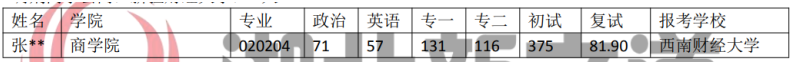 分數匯總:調劑同學去向:新疆財經大學:1